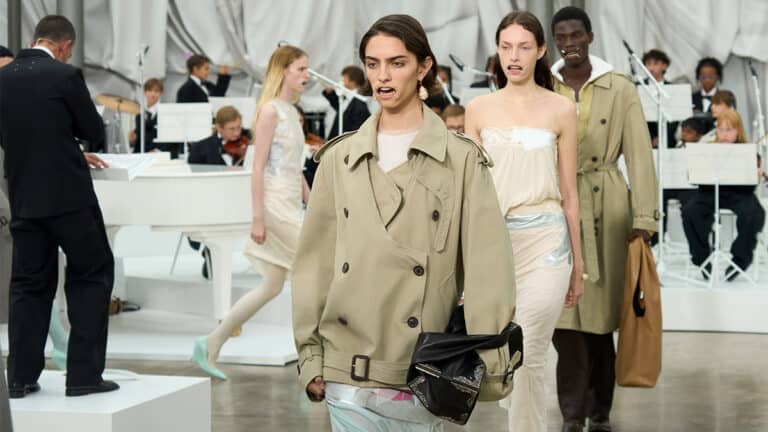 Pour le printemps-été 2026, Maison Margiela propose une collection Co-Ed qui fusionne expérimentation textile, revisite des archives et narration visuelle. Le tailoring déconstruit rencontre des effets plastiques inédits, dans un défilé orchestré par une soixantaine d’enfants musiciens.